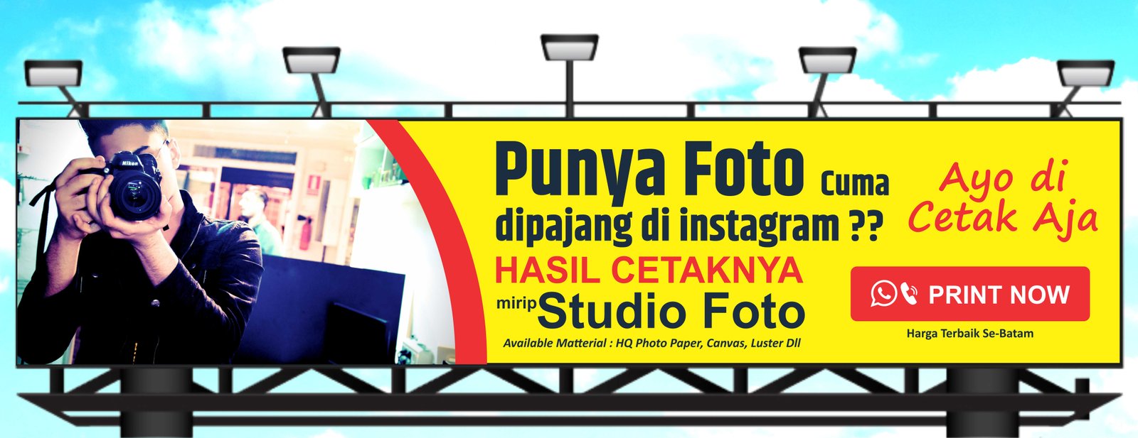 Mampu untuk memproduksi cetakan besar yang tahan cuaca dengan resolusi gambar baik, di gunakan untuk promosi dalam ruangan dan luar ruangan,